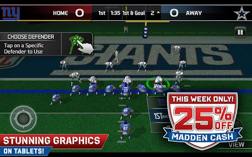 Overview: An experience 25 years in the making! EA SPORTS delivers the most authentic NFL football experience to date for Android smartphones and tablets with MADDEN NFL 25. Build your Ultimate Team of NFL stars and run the show on offense and defense with new and improved touch controls, game modes and much more!